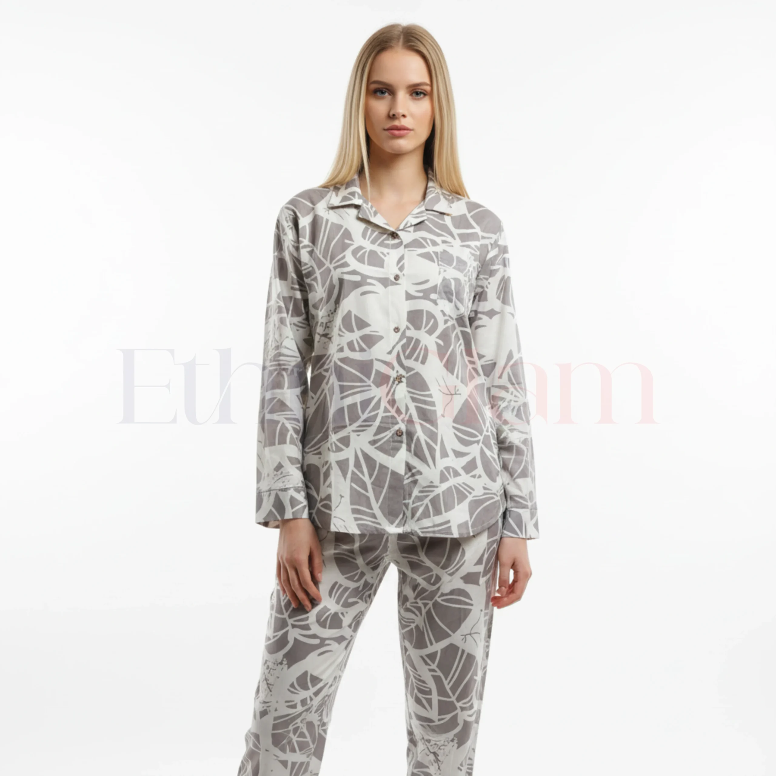 Upgrade your wardrobe with this stunning Popcorn Co-Ord Set – Ash Grey with White Abstract Print. Made from ultra-soft popcorn textured fabric, this set includes a breezy half-sleeve shirt paired with comfortable wide-leg elastic waist pants. Designed for maximum comfort and style, it offers the perfect relaxed silhouette for any occasion.Product Highlights