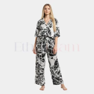 The Popcorn Co-Ord Set in Baby Pink with White Abstract Print is designed for women who love gentle tones and effortless comfort. The premium popcorn textured fabric feels light, airy, and ultra-comfortable all day long. Its loose-fit half-sleeve button-down shirt brings a relaxed, stylish touch, while the elastic waist wide-leg pants ensure maximum comfort and a flattering drape. The soft Baby Pink shade paired with a white abstract print gives a subtle, elegant, and modern vibe. This set is ideal for vacations, airport looks, brunch dates, daily wear, and relaxed outings.